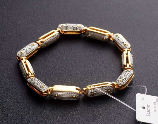 Серебряный браслет с позолоченной отделкой, состоящий из звеньев, на каждом из которых написана одна из Заповедей. Заповеди - это практически основа христианского верования. Их должен придерживаться каждый человек в своей жизни.