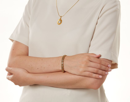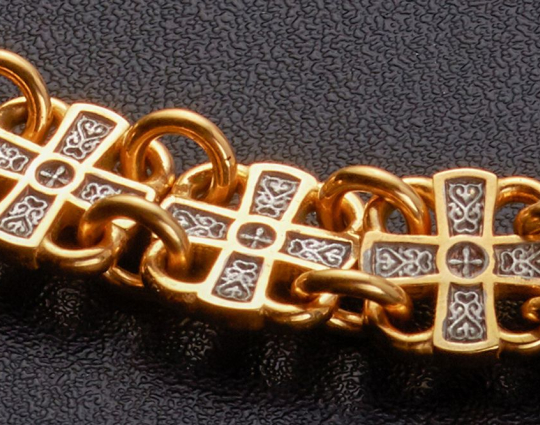 Серебряный браслет с позолоченной отделкой. Он состоит из литых звеньев в виде крестов, называющихся «знамение победы», что означает победу христианства над язычеством.