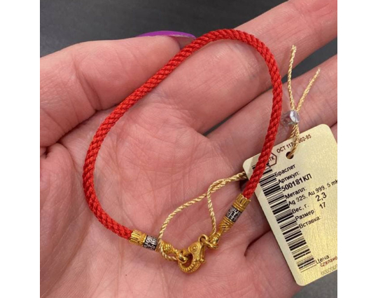 Браслет текстильный. 2 мм | 500181 | Серебро 925 пробы с позолотой, шёлк