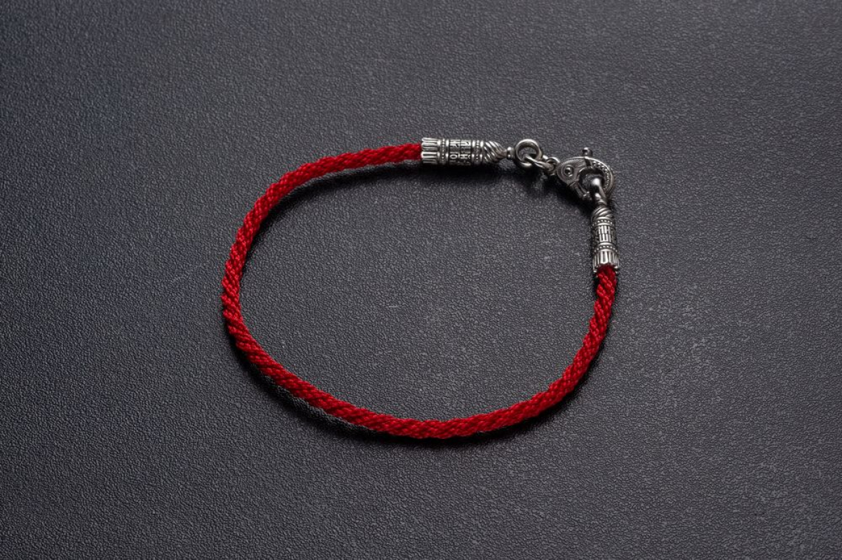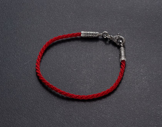 Текстильный плетеный браслет ручной работы. На его концах - специальные серебряные зажимы в форме куполов. На них написаны слова – обращения к Богу. Замком служит съемный карабин.