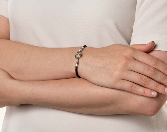 Он используется для ношения следующих изделий:  браслет из серебра c родиевым покрытием с переходником (арт. 3500064), кожаный браслет с переходником (арт. 150014), собранных браслетов "Доброта" (арт. 150001_1), "Надежда" (арт. 150001_4), "Святые образы" (арт. 50001_5r) и цепочка снейк с родиевым покрытием (арт. 3900064).