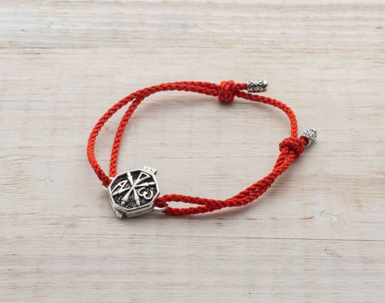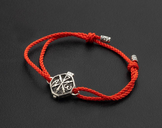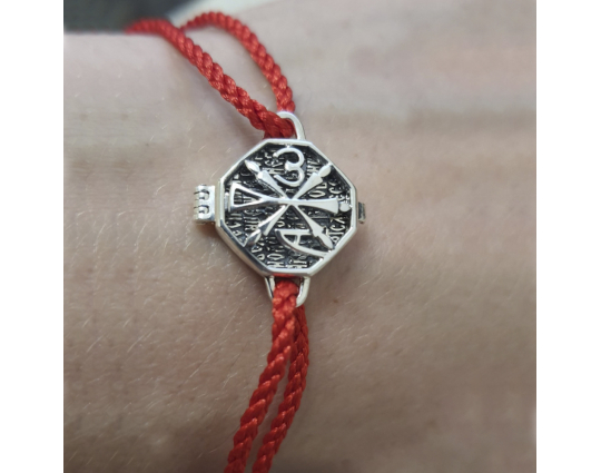 На лицевой части находится Хризма - древний символ Спасителя. Длина браслета регулируется от 17 до 24 см.