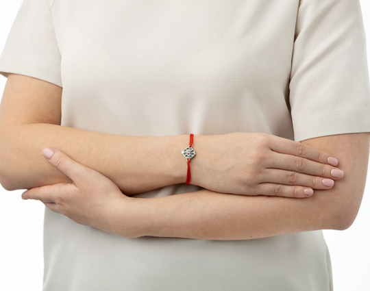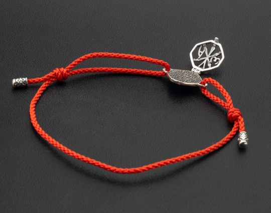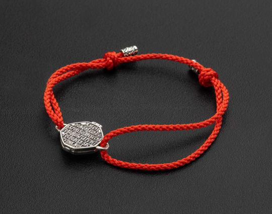 На браслете из текстиля находится подвеска небольшого размера. Она выполнена из серебра 925 пробы. Внутри размещен текст 90 Псалома, "Живый в помощи вышняго". Псалом построен в форме обращения наставника, мудреца, который в своей речи, направленной к ученику или к сыну, говорит о полной безопасности и защите человека, который живет вместе с Богом в сердце.