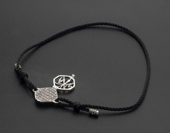 На браслете из текстиля находится подвеска небольшого размера. Она выполнена из серебра 925 пробы. Внутри размещен текст 90 Псалома, "Живый в помощи вышняго". Псалом построен в форме обращения наставника, мудреца, который в своей речи, направленной к ученику или к сыну, говорит о полной безопасности и защите человека, который живет вместе с Богом в сердце.