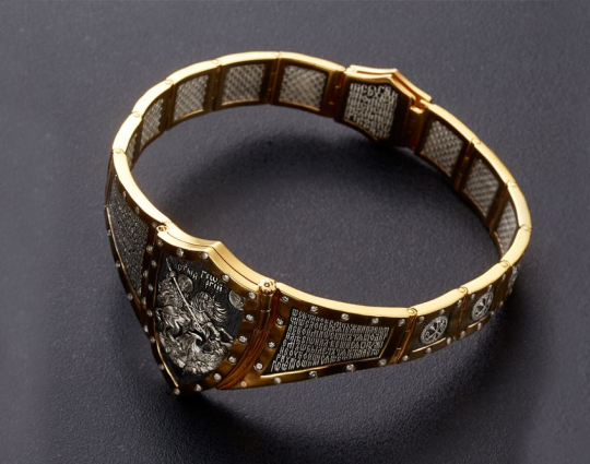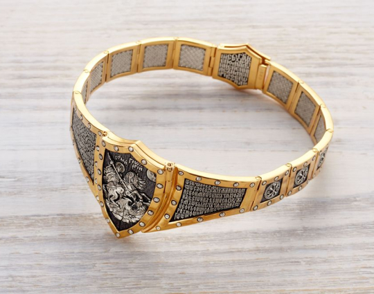 Святой Георгий очень почитается в Христианской Церкви, потому что он защищает воинов и помогает трудящимся. Под открывающейся крышкой этого звена написана молитва, с которой обращаются к этому Святому.