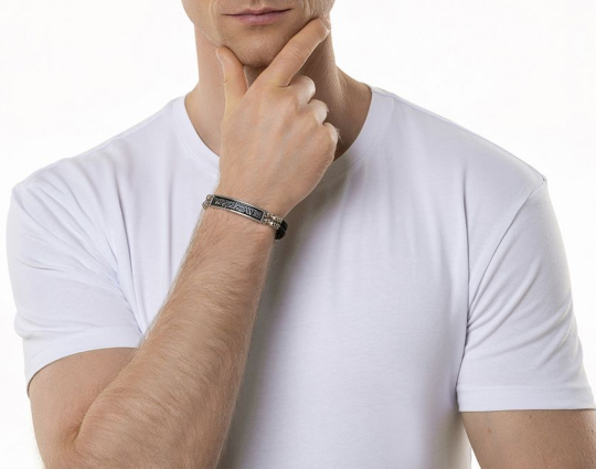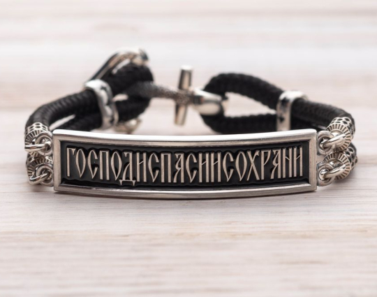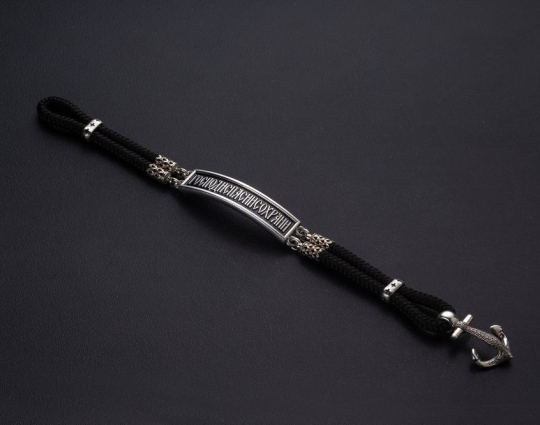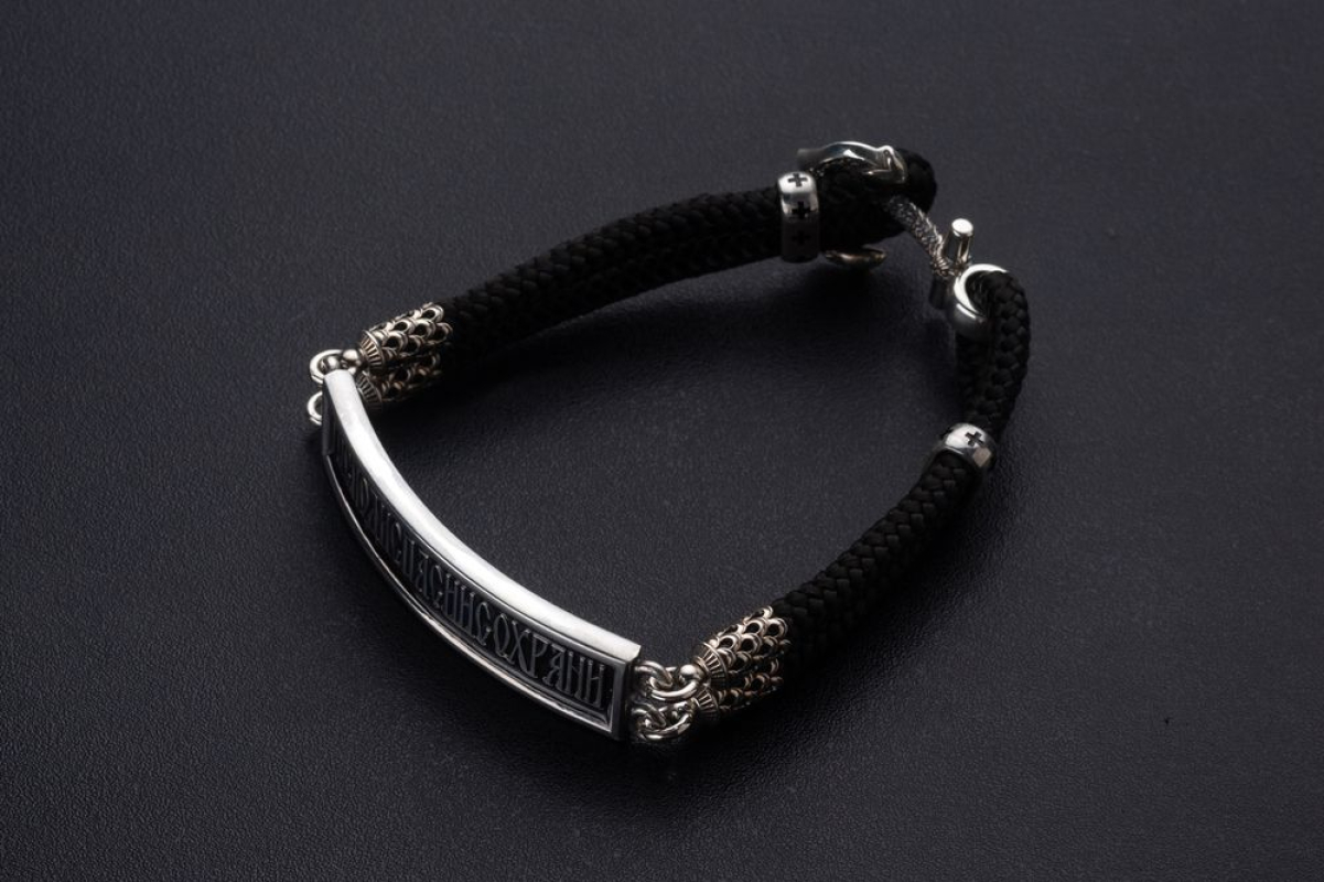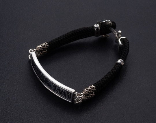 Браслет с серебряной пластиной, на которой написаны две молитвы, к