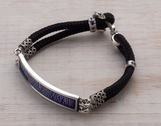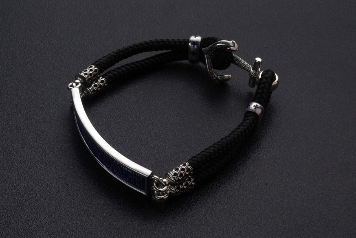 Браслет с серебряной пластиной, на которой написаны