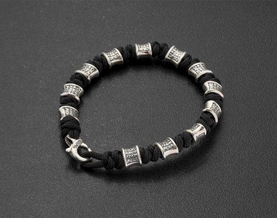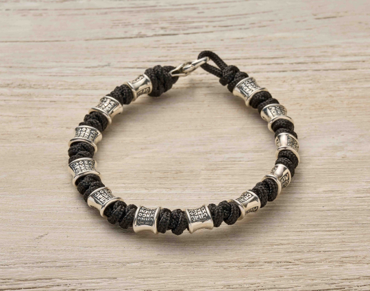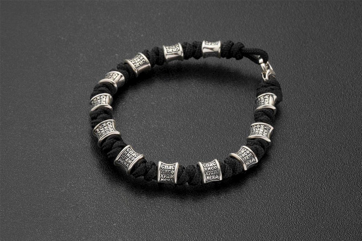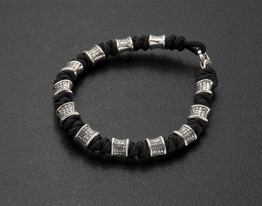 Браслет текстильный на руку с вставками из серебра 925 пробы. Он универсальный и может быть как мужским, так и женским. На вставках находятся слова молитвы - "Спаси и Сохрани". В этих словах заключено обращение к Господу и искренняя вера в его помощь, любовь и покровительство в любой ситуации. Замок на браслете - карабин.