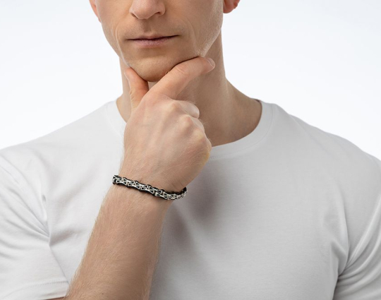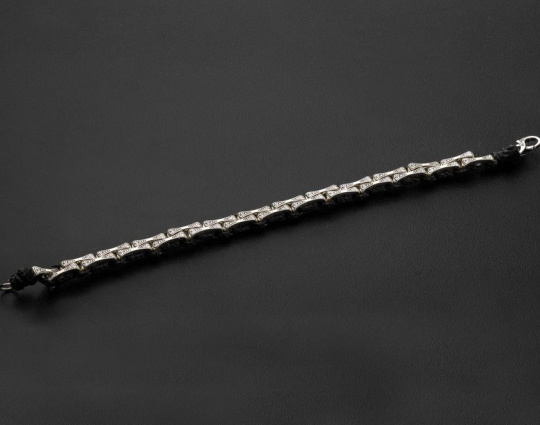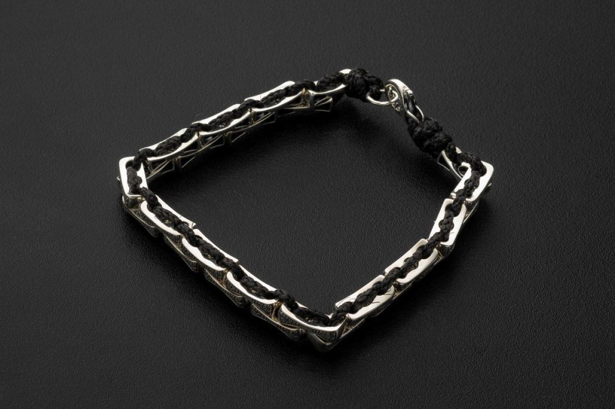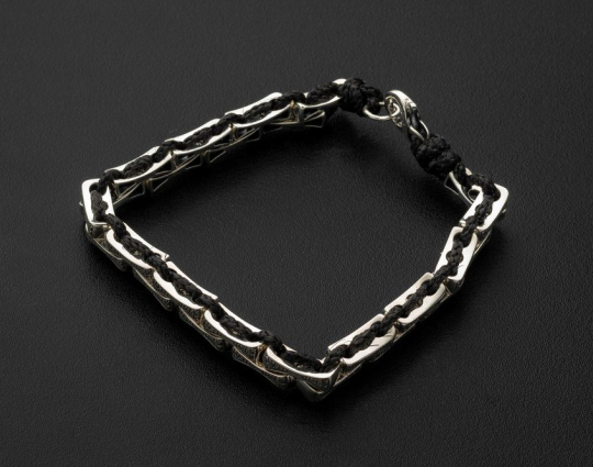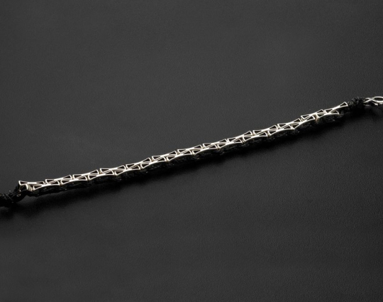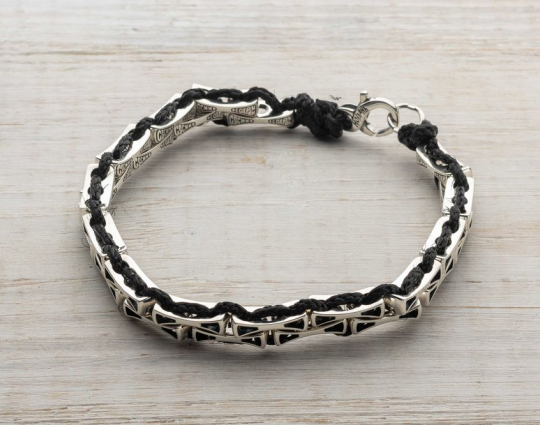 Браслет выполнен из текстиля с вставками из серебра 925 пробы. На вставках находятся слова молитвы - "Спаси и Сохрани". В этих словах заключено обращение к Господу и искренняя вера в его помощь, любовь и покровительство в любой ситуации. Замок на браслете - карабин.