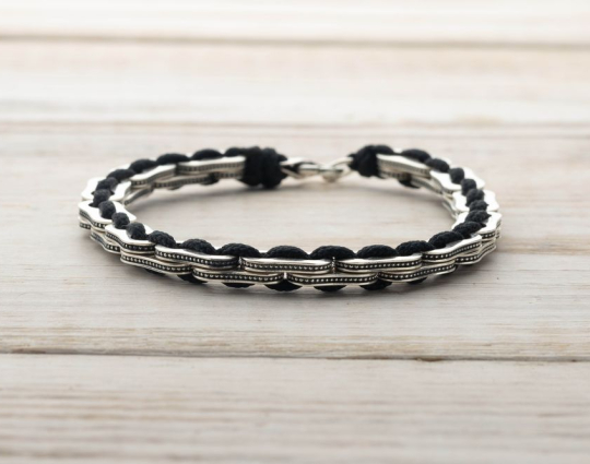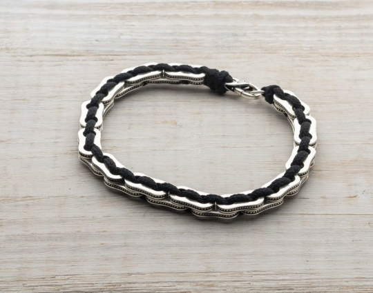 Браслет из текстиля с серебряными вставками