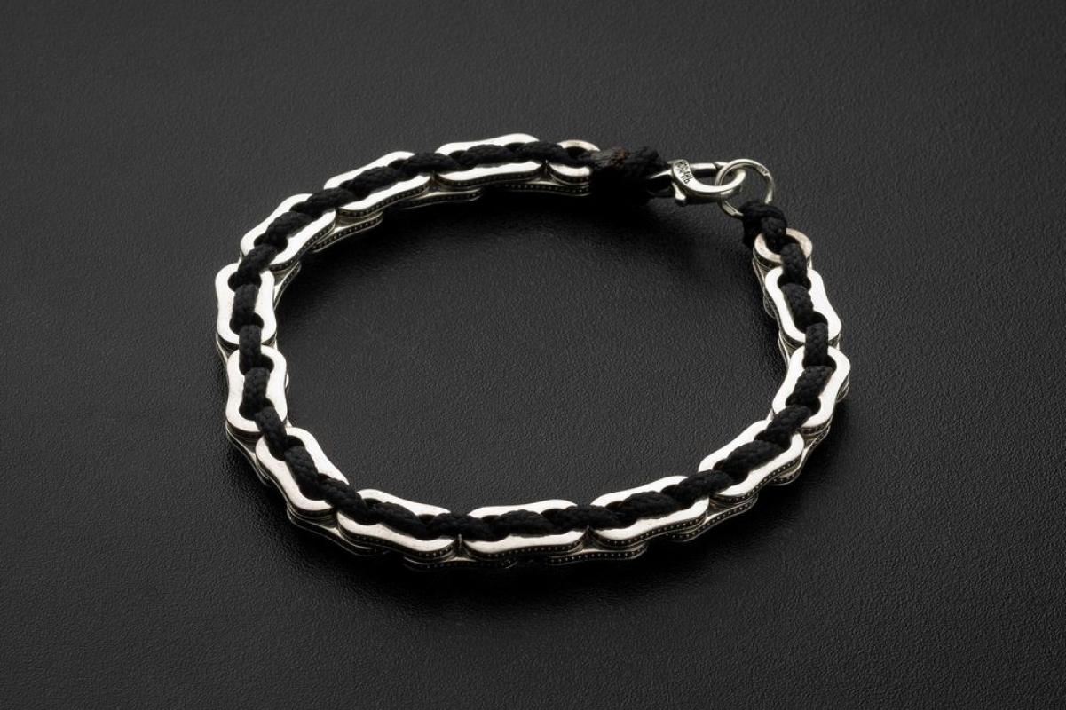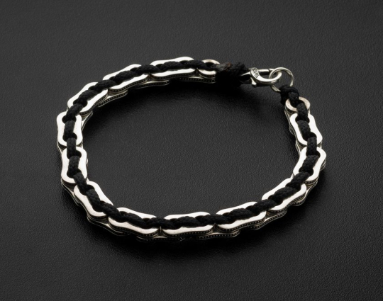 Браслет выполнен из текстиля с вставками из серебра 925 пробы.