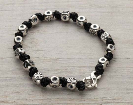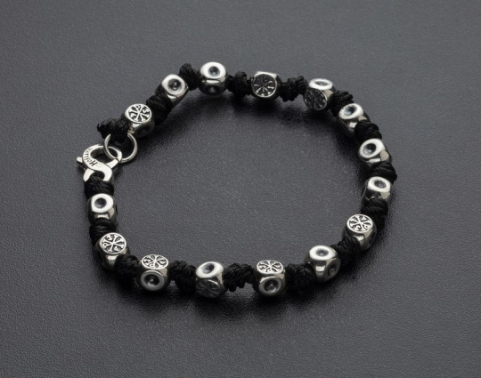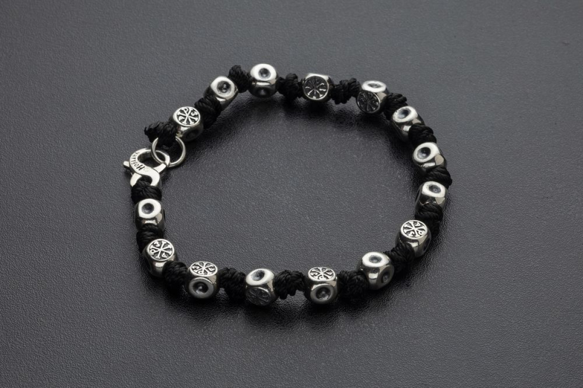 Текстильный браслет с Хризмой | b-tch-036 | Текстиль, серебро 925 пробы