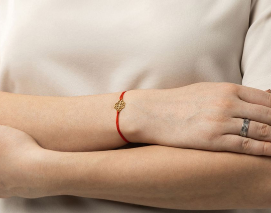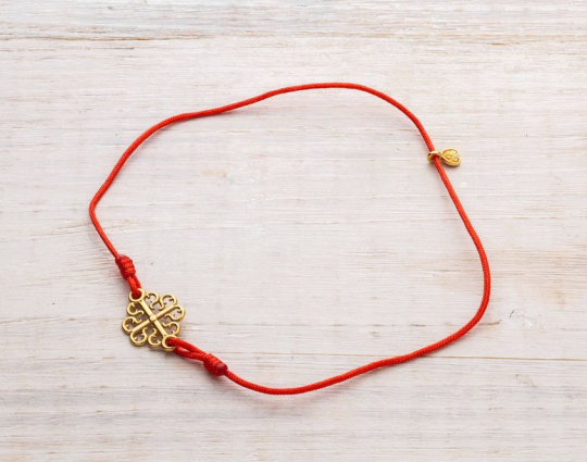 Православный браслет с подвеской «Процветший крест» | 500334kl_red | Серебро 925 пробы, позолота, текстиль