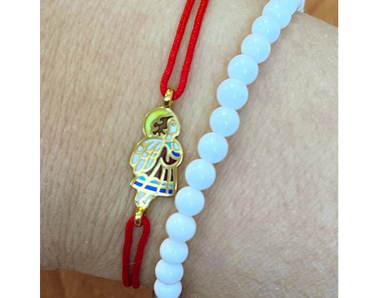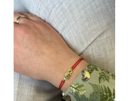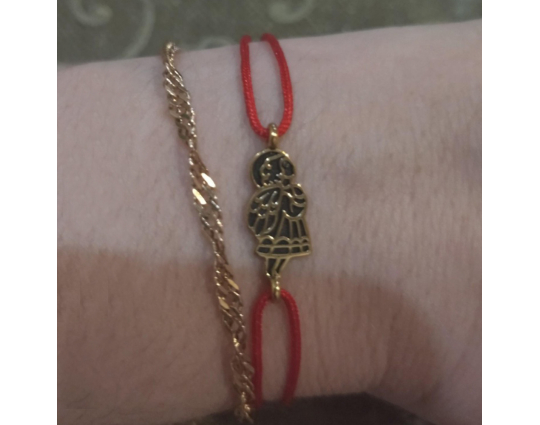 На текстильном браслете находится подвеска в виде Ангела - Хранителя из серебра 925 пробы с позолотой. Он появляется у любого человека при крещении и сопровождает его в течении всей жизни, оберегая от всякого зла и наставляя своей мудростью и советами.