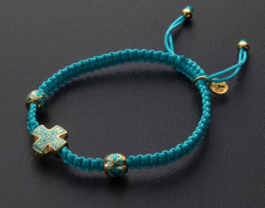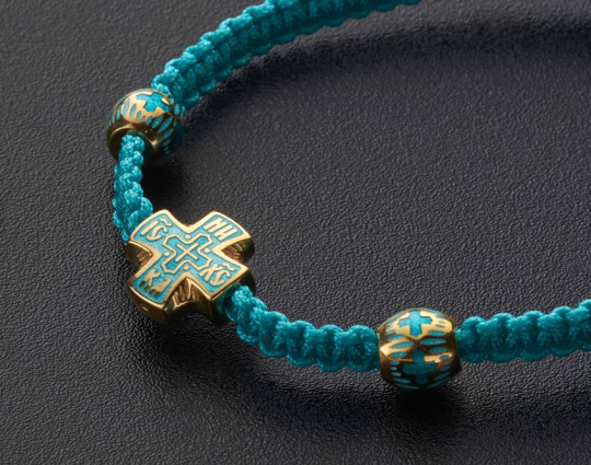 Православный браслет из текстиля с крестиком из серебра с эмалью | b20pz_tiffani | Серебро 925 пробы, текстиль, позолота