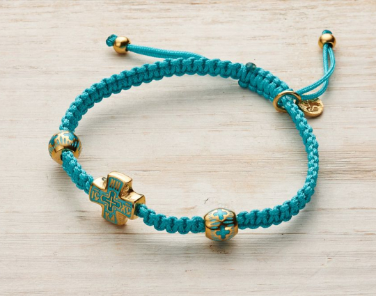 Православный браслет из текстиля с крестиком из серебра с эмалью