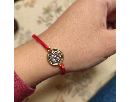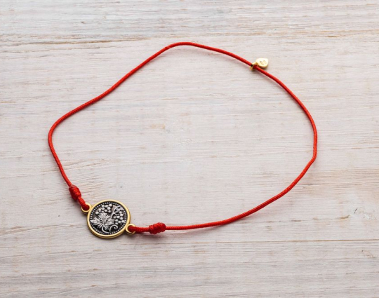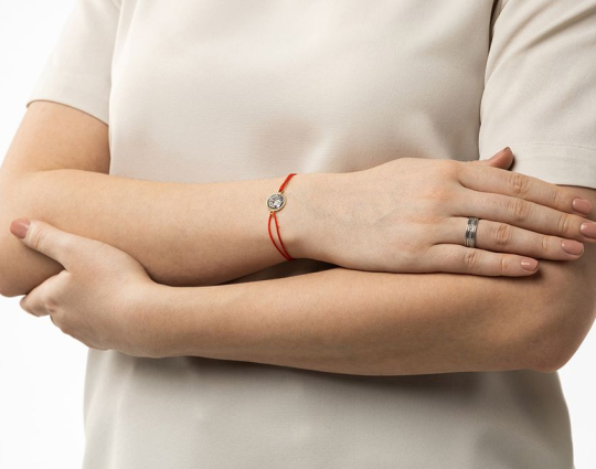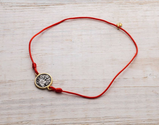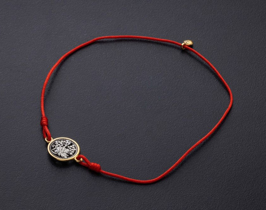 Православный браслет с подвеской «Виноградная лоза» | 500303kl_red | Серебро 925 пробы, позолота, текстиль