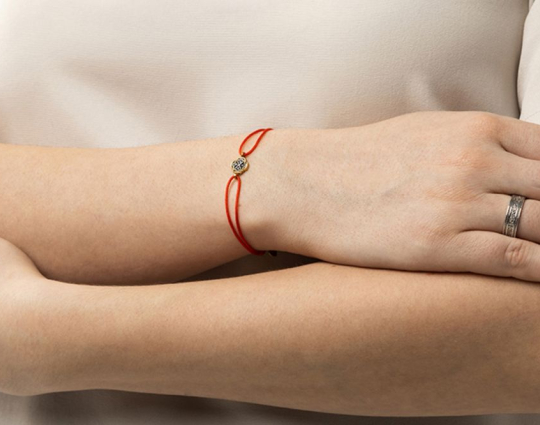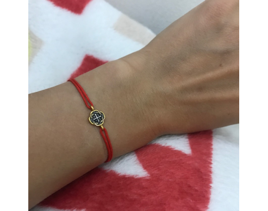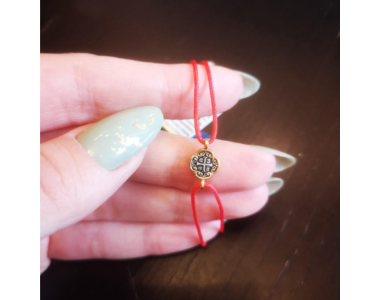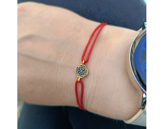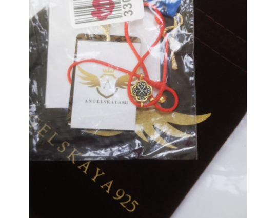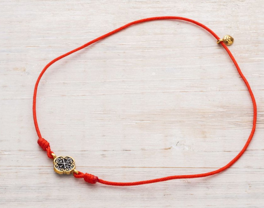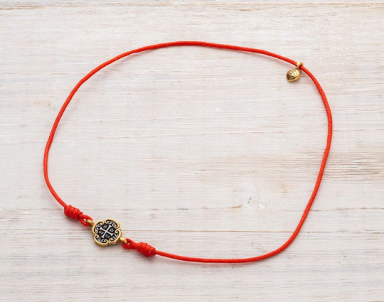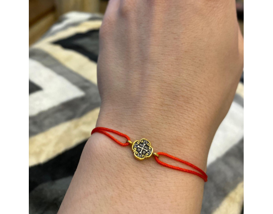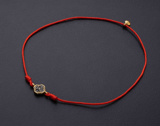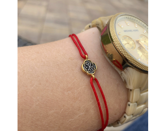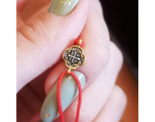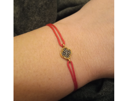 Православный браслет с подвеской «Хризма и крест» | 500310kl_red | Серебро 925 пробы, позолота, текстиль