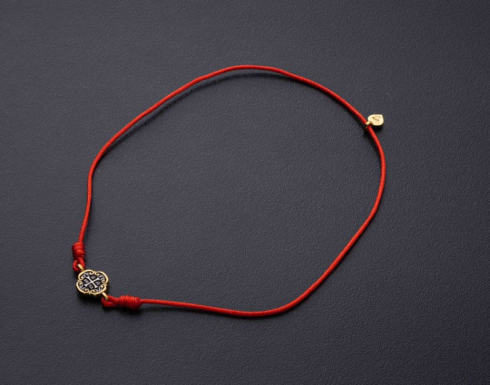 Текстильный браслет с подвеской из серебра 925 пробы. Размер регулируется от 16 до 24 см. при помощи двух узелков.