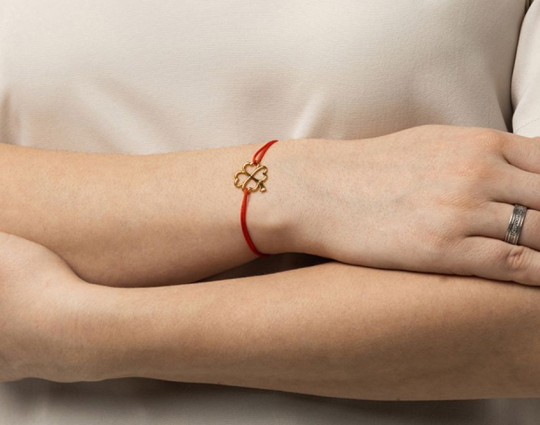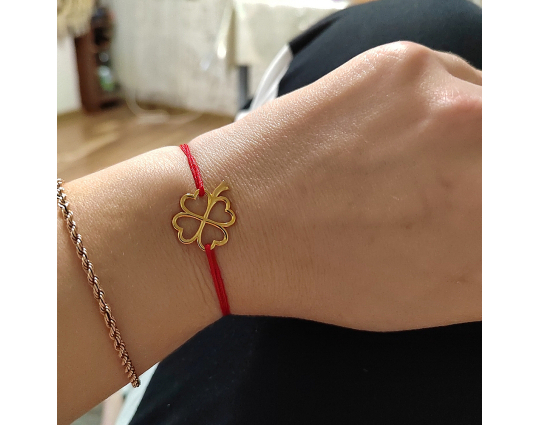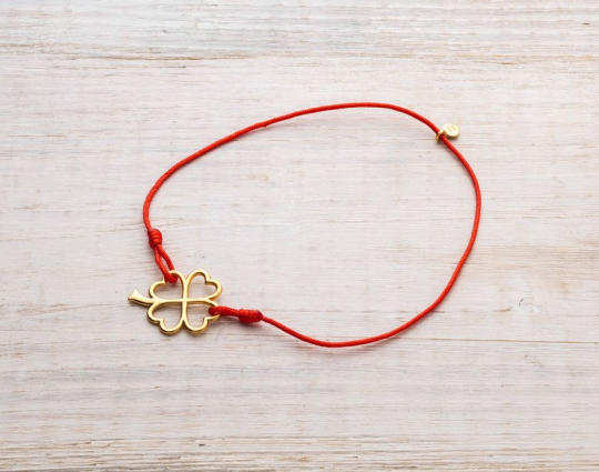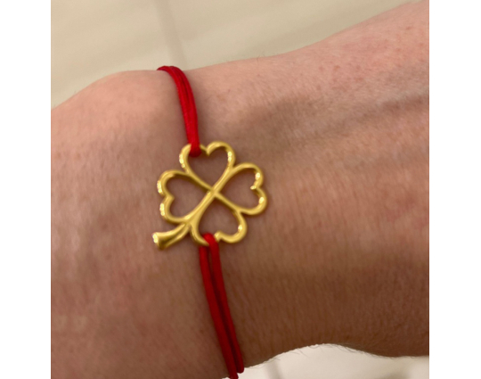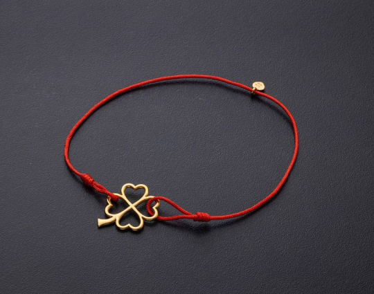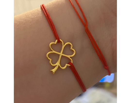 Православный браслет с подвеской «Клевер» | 500301kl_red | Серебро 925 пробы, позолота, текстиль