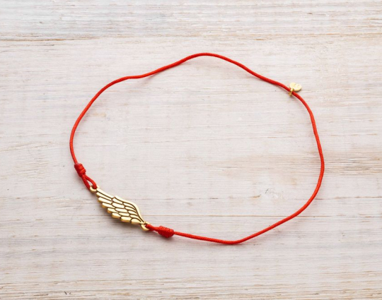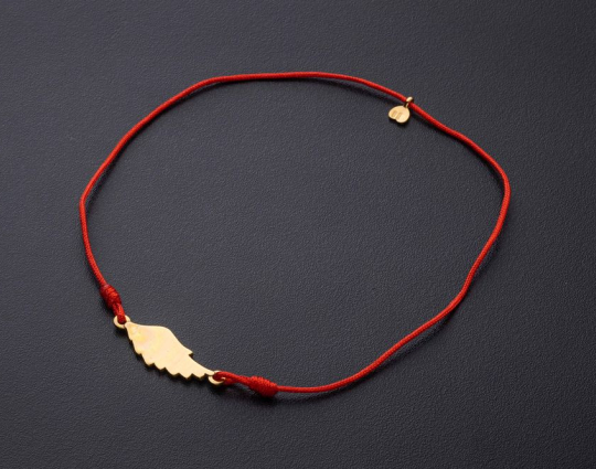 Православный браслет с подвеской «Птичье крыло» | 500300kl_red | Серебро 925 пробы, позолота, текстиль