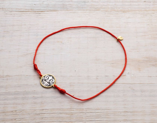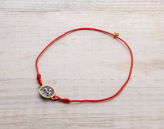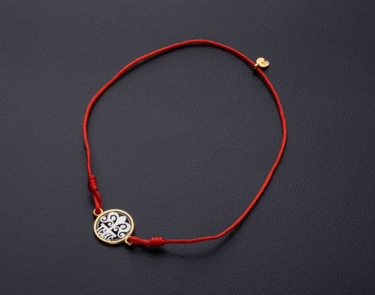 Православный браслет с подвеской «Процветший крест» | 500328kl_red | Серебро 925 пробы, позолота, текстиль