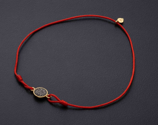 Текстильный браслет с подвеской из серебра 925 пробы с позолотой. Размер регулируется от 16 до 24 см при помощи двух узелков.