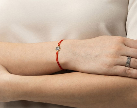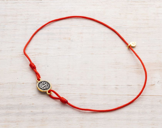 Православный браслет с подвеской «Процветший крест» | 500360kl_red | Серебро 925 пробы, позолота, текстиль