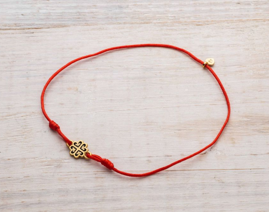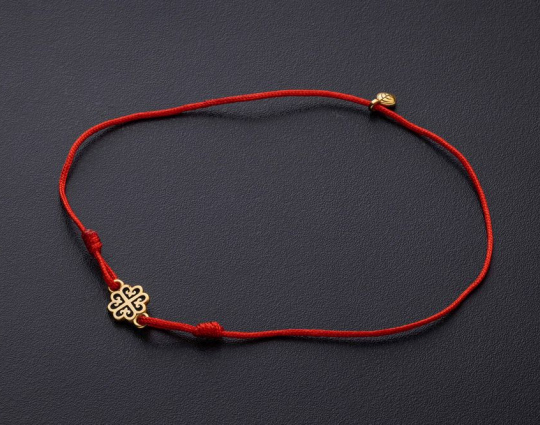 Православный браслет с подвеской «Равносторонний крест» | 500367kl_red | Серебро 925 пробы, позолота, текстиль