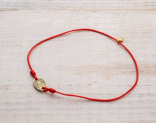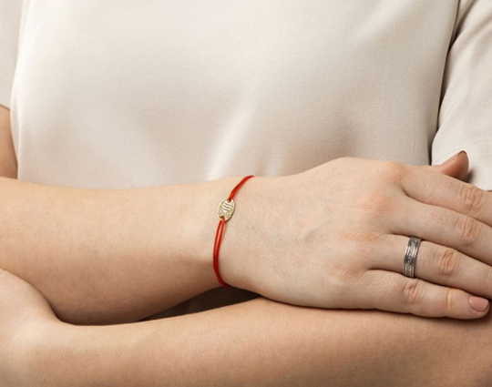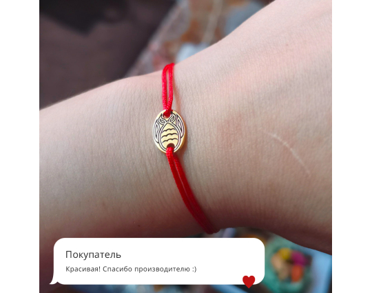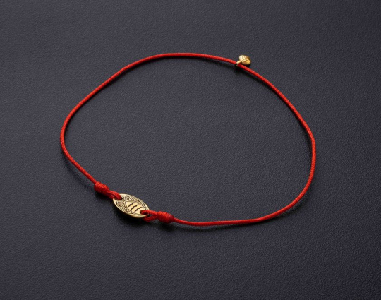 Православный браслет с подвеской «Рыбка» | 500336kl_red | Серебро 925 пробы, позолота, текстиль
