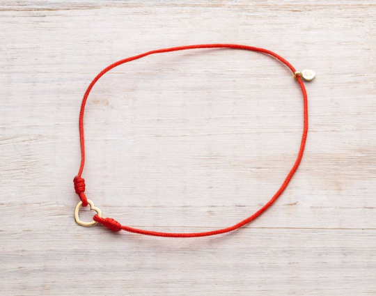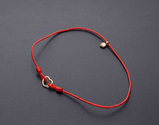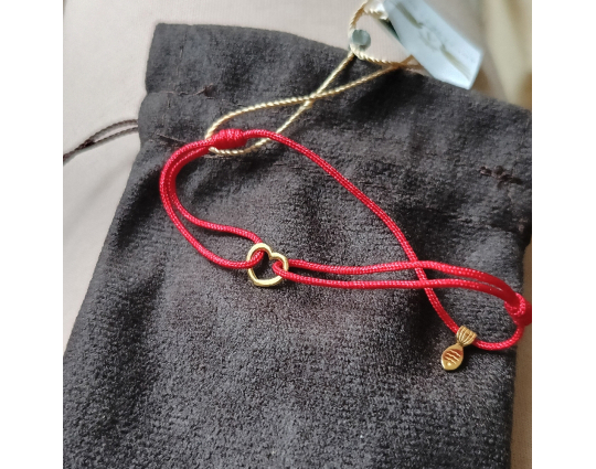 Православный браслет с подвеской «Сердце» | 500321kl_red | Серебро 925 пробы, позолота, текстиль
