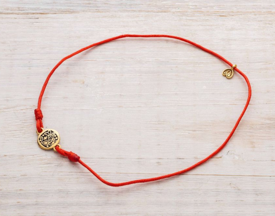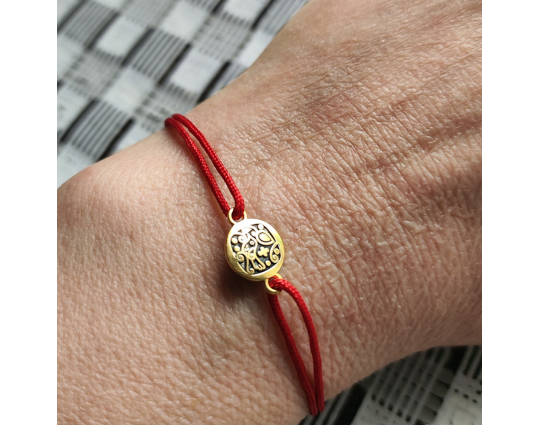 Православный браслет с подвеской «Райский сад. Спаси и сохрани.» | 500351kl_red | Серебро 925 пробы, позолота, текстиль