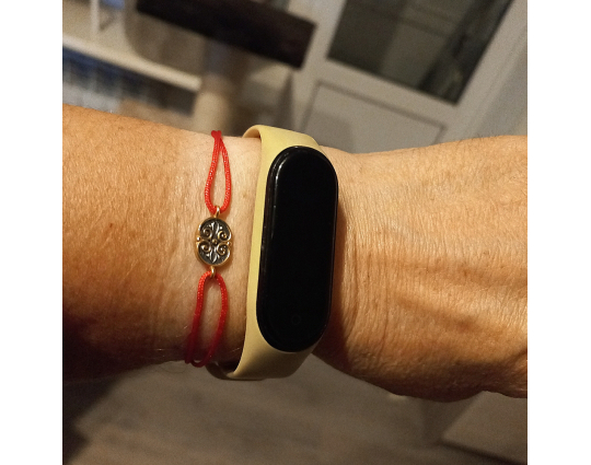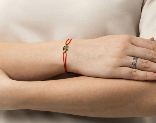 Длина текстильного браслета регулируется от 16 до 24 см с помощью двух узелков. На подвеске находятся слова "Спаси и Сохрани" - главной короткой молитвы, отражающей суть взаимоотношений между человеком и Господом.