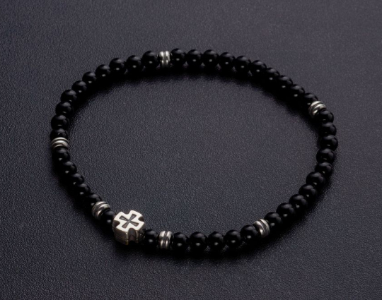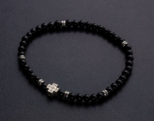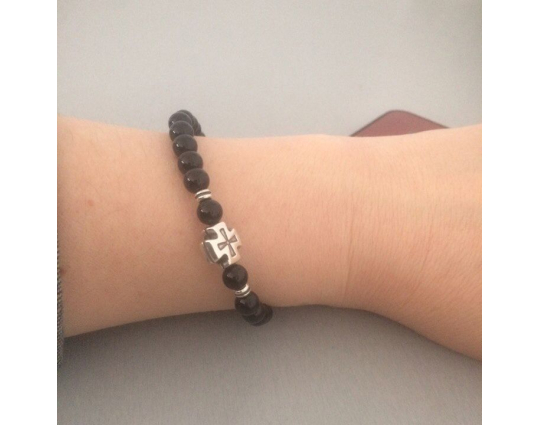 Четки из натурального камня агата с серебристой вставкой «Иерусалимский крест», которая дополняет основу. На обратной стороне креста нанесено: IC XC, НIКА.
