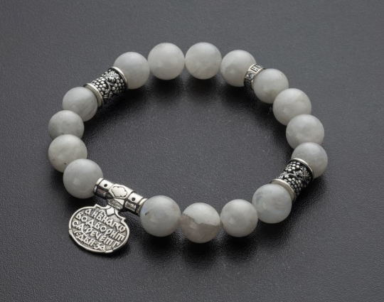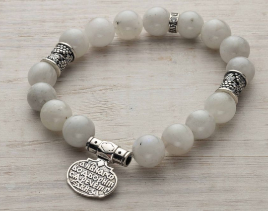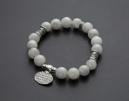 Православный браслет "Живый в помощи" | b-bpk-001_lun | Серебро 925 пробы, лунный камень (адуляр)
