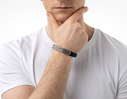 Браслет "Рыбы. Молитва Отче Наш" | b_17s | Серебро 925 пробы, натуральная кожа