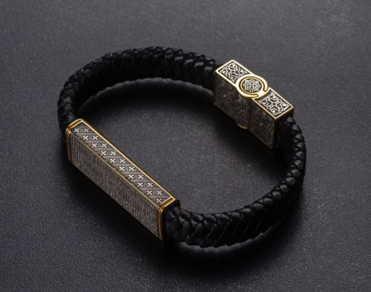 На концах кожаной основы - удобный магнитный замок с византийским орнаментом.