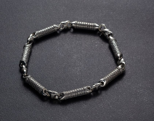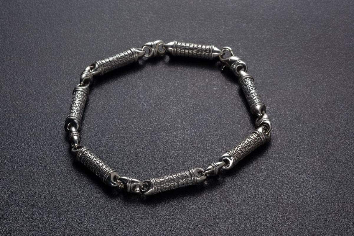 Серебряный браслет, состоящий из звеньев, на которых написаны священные слова. Они взяты из 90-ого Псалома, который как бы построен в форме обращения учителя к своему подопечному или к сыну.  В наставлении говорится о том, что Бог - наш помощник и защитник, к которому можно обращаться в сложных ситуациях. В последних строках вводятся слова Всевышнего, подтверждающие сказанное.