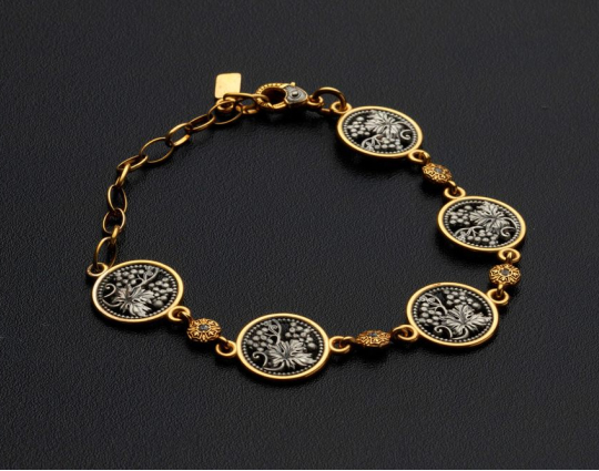 Браслет покрыт позолотой 999 пробы.
