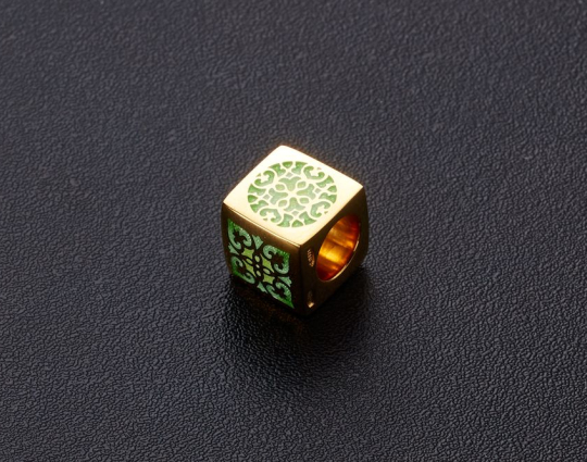 Остальные грани бусины украшены эмалевой росписью в византийском стиле с растительными орнаментами.