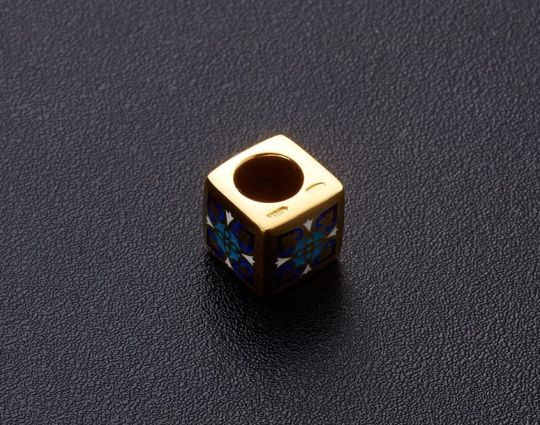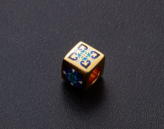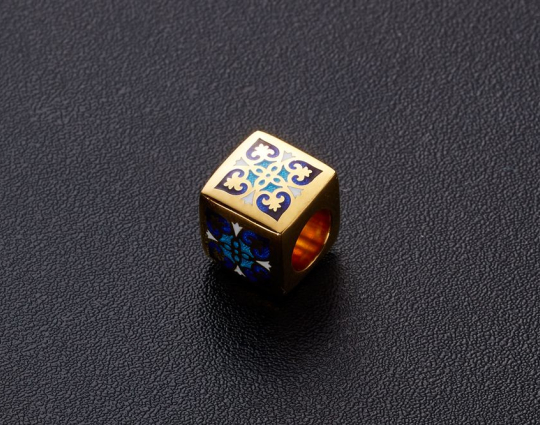 Остальные грани бусины украшены эмалевой росписью в византийском стиле с растительными орнаментами.