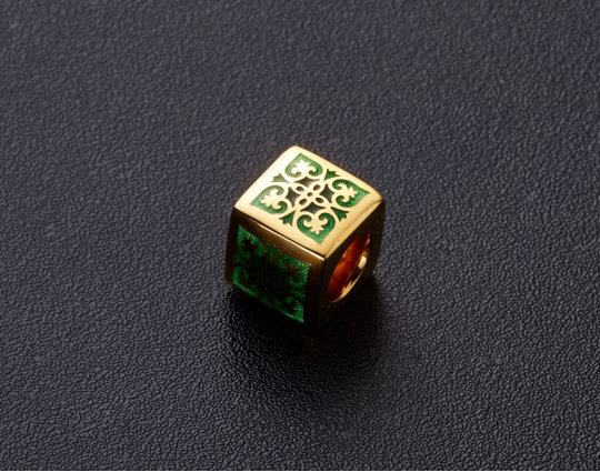 Остальные грани бусины украшены эмалевой росписью в византийском стиле с растительными орнаментами.