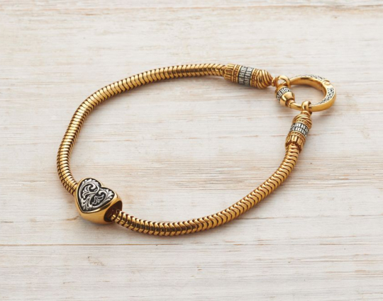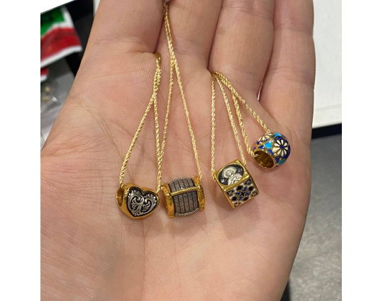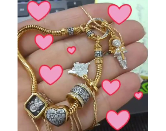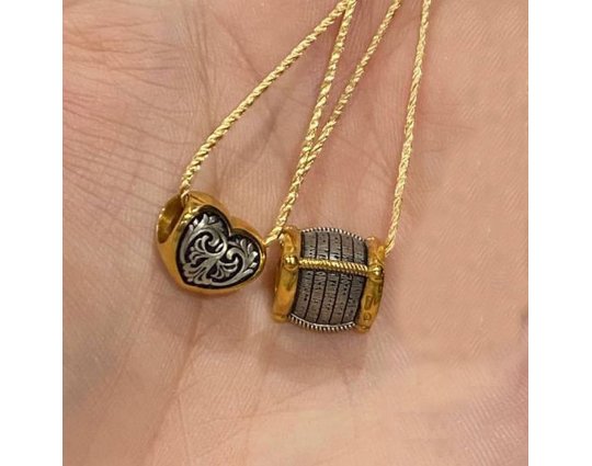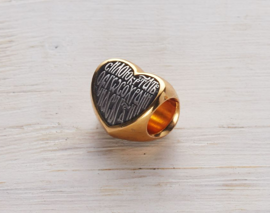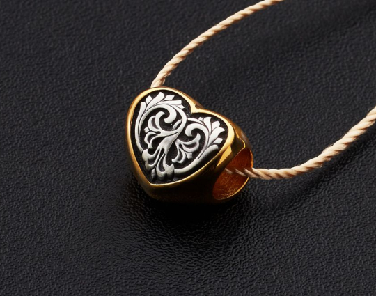Серебряная бусина с позолоченной отделкой, сделанная в форме сердца, которое является символом любви. Любовь - великая христианская добродетель, имеющая такую огромную силу, что ей под силу изменить мир. Примером такой любви является подвиг Христа, который принял смерть на кресте.