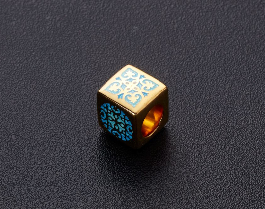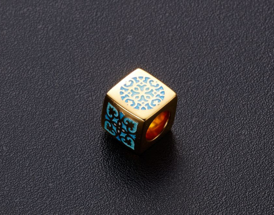 Остальные грани бусины украшены эмалевой росписью в византийском стиле с растительными орнаментами.