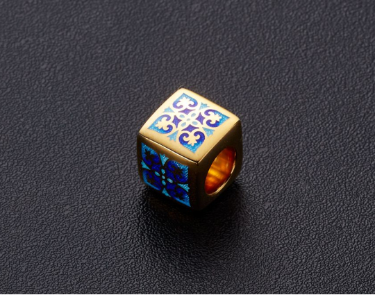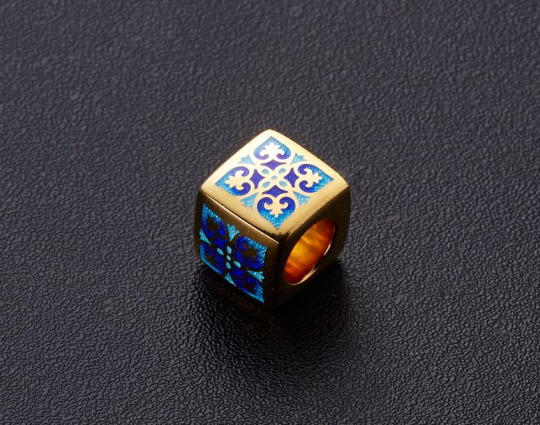 Остальные грани бусины украшены эмалевой росписью в византийском стиле с растительными орнаментами.