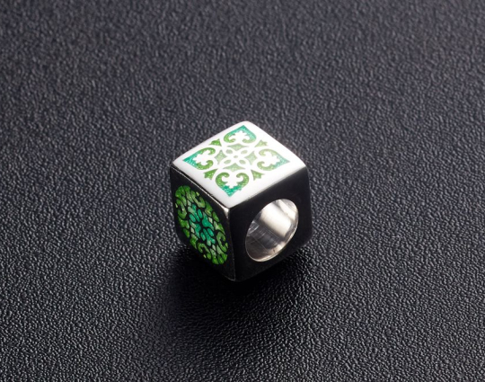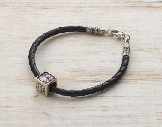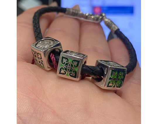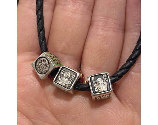 Квадратная бусина из серебра с родиевым покрытием и эмалевой росписью. На одной из сторон - изображение Святого Николая. У него просят помощи военные, путешественники и простые люди. Николай Чудотворец исцеляет, оберегает и защищает.