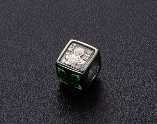 Бусина "Святитель Николай Чудотворец" с зеленой эмалью | 02_117P_g | Серебро 925 пробы, эмаль