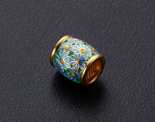 Драгоценная бусина с эмалевой росписью в виде ромашек, которые напоминают нам о любви, о солнце, о чистоте души и помыслов. В России ромашка главнейший символ праздника «День семьи». Он отмечается в честь Петра и Февронии, которые считаются покровителями семейного благополучия.