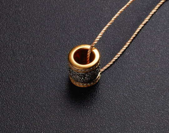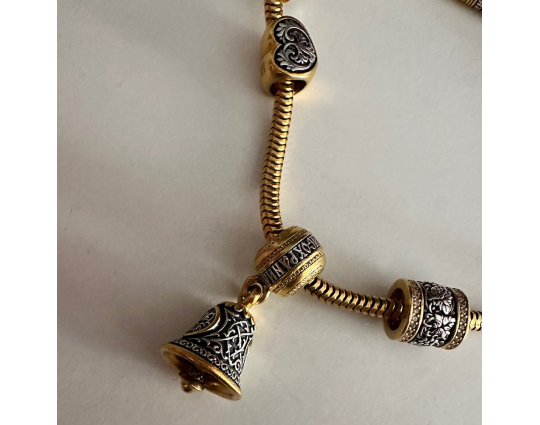 Позолоченная бусина из серебра с орнаментом из виноградной лозы по центру корпуса. Лоза - символ Иисуса Христа, который приходит к нам через Причастие.