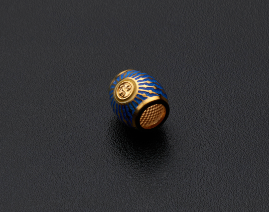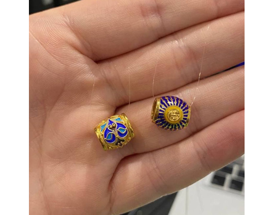 Серебряная позолоченная бусина с эмалевой росписью, которая заполняет фон под одним из ключевых символов мировой христианской культуры – Солнцем. Оно ассоциируется и с жизнью, и с Иисусом, который своим теплом, своей любовью к людям растоплял сердца грешников и наставлял их на путь истинный.